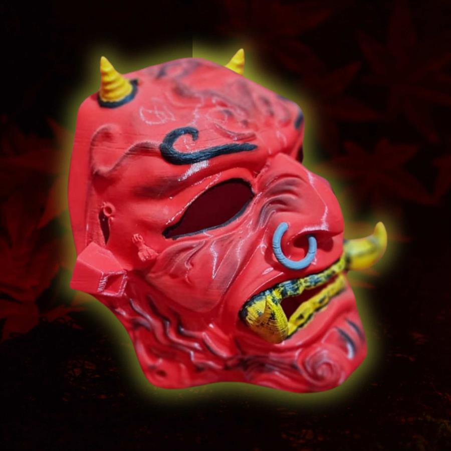 Máscara de Demonio Rojo fabricada mediante impresión 3D en PLA, un material biodegradable, rígido y resistente. Escala real para ajuste completo en cabeza humana, con un diseño detallado que resalta sus características aterradoras. Acabada con pintura de alta calidad para un efecto visual intensamente realista y detalles que destacan por su profundidad y precisión. Ideal para disfraces, eventos temáticos y cosplay, diseñada para brindar comodidad y resistencia. Dimensiones ajustadas para adaptarse a la mayoría de los tamaños de cabeza adulta.