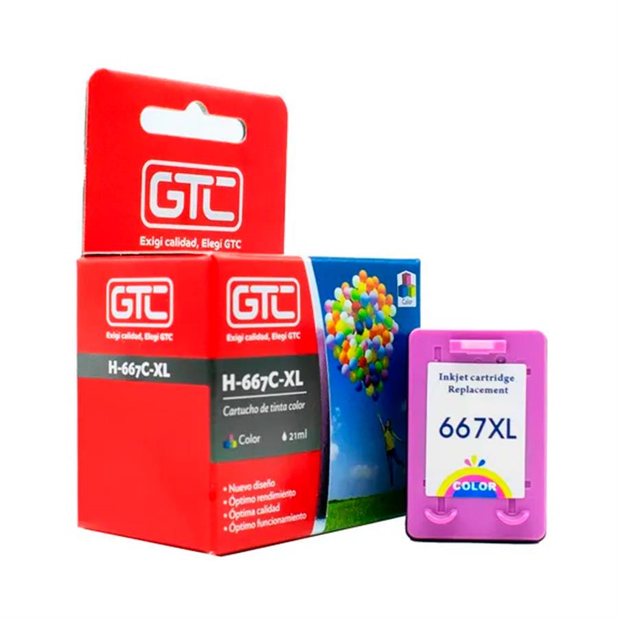 Cartucho de tinta GTC compatible con impresoras HP que usan modelo 667XL. Proporciona impresión a color de alta calidad, ideal para documentos y gráficos nítidos.